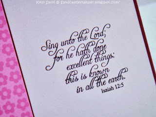 I love music and a "song of thanksgiving" surely pleases the Lord. Never does He speak that the songs of our hearts need to be perfectly performed to be a joyful sound to Him. So, think of some ways you can make a joyful sound to the Lord your God. The challenge this month will be to use a musical instrument image, musical score paper, musical note brads, etc. Whatever you have in your stash that is of the musical nature!